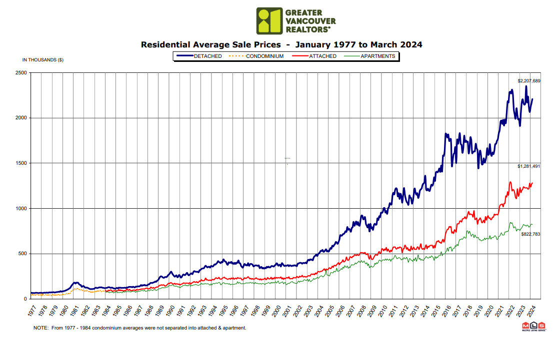 Sales of detached homes in March 2024 reached 694, a 5.4 per cent decrease from the 734 detached sales recorded in March 2023. The benchmark price for a detached home is $2,007,900. This represents a 7.4 per cent increase from March 2023 and a 1.8 per cent increase compared to February 2024.