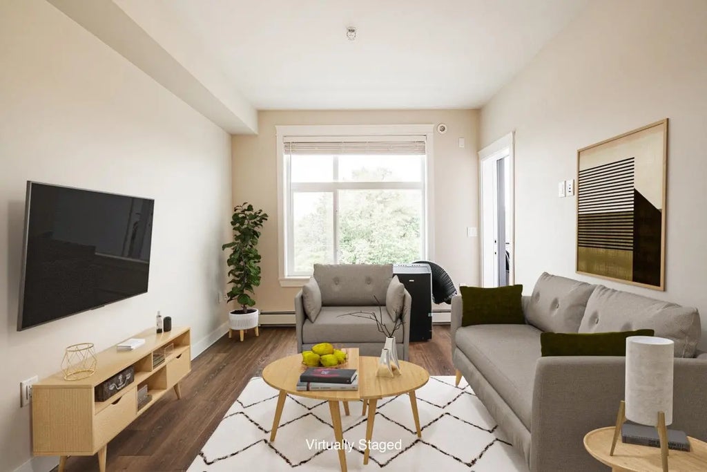 Luxury & Location! Welcome to Ledgeview, the perfect place to call your next home. This modern, quality built 1 bdrm/1bath features; bright oversized windows, 9ft ceiling, detailed mouldings, gourmet kitchen with quartz countertop, high-end stainless steel appliances, 5 burner gas range, soft-closing white shaker cabinets with recessed LED light underneath, A/C ready, gas outlet for BBC & pre-wired parking stall to accept an EV charger. Elegant bathroom with heated floor, heated fog-free mirror and built-in medicine cabinet. Amenities includes; Gym, clubhouse, bike room, playground, roof top patio, community garden with a spectacular water & mountain view. Abundance of luxury features. It's a must see! OPEN HOUSE Sun, Aug 17th from 2-3PM.