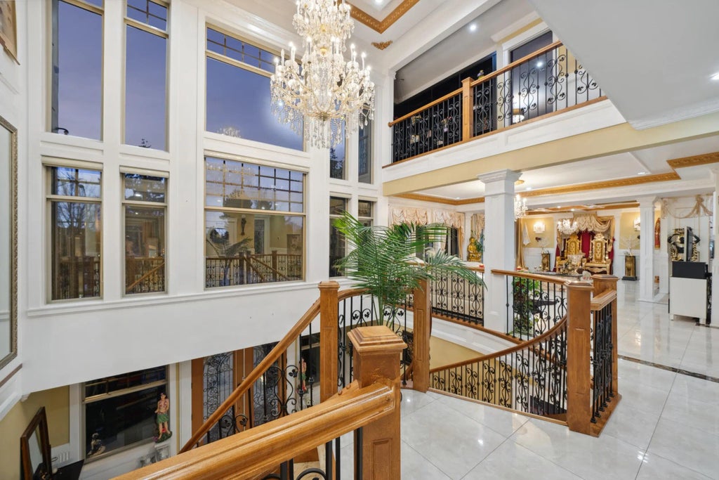 Discover Empress Palace Residence, over 9,300 sq.ft estate on almost 11,000 sq.ft lot in vibrant Surrey. Nearly $600,000 in renovations across 3 levels above ground. A 27-ft open foyer with stunning double staircases lead to the main floor. Features include marble flooring, a luxury kitchen, two additional kitchens, a kitchenette, elevator, movie theatre, double-glazed windows, GEO thermal energy, A/C and smart home tech. Enjoy a soundproof theatre with high end sound systems. Two entrances—from cul-de-sac and Main Street—offer privacy and flexibility. Ideal for families to experience luxury living or investors seeking extremely high rental income potential. Give us a call today to book your private showing!