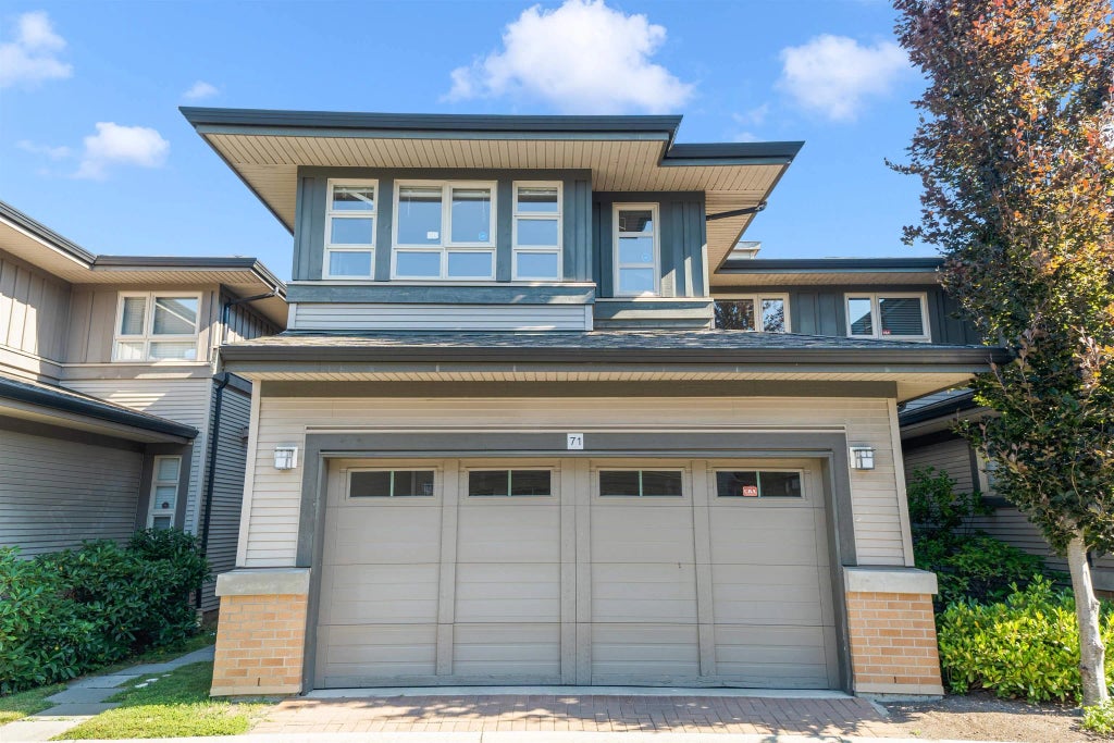 Springbrook Estates, well-maintained 2-level duplex-style townhouse. 3 bdrms, 2.5 baths. Floor area from Registered Strata Plan including side by side garage is 2,106 sq ft. An end unit, front yard, family room and master bedroom facing north. Nice and bright. Good layout, 18' living room ceiling, huge master bedroom with walk-in closet and 5 pc ensuite bath. Granite counter top, stainless steel kitchen appliances. Separate laundry room with a sink and full size side by side washer and dryer. Security system. Quiet yet convenient location. Nice neighborhood and walking distance to Garden City Park, Henry Anderson Elementary, MacNeil Secondary, Walmart shopping center, and public transit. Easy to show, very motivated seller, try your offer! Open house Sat.&Sun. Nov 1&2 (2-4pm).