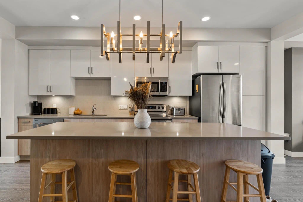 Trail access from your backyard?! YES PLEASE! This spacious 3 Bed 4 Bath townhome in Midtown offers nearly 1,800 sqft with a BONUS rec room + washroom below. Soaring 11 ft ceilings and floor-to-ceiling windows bring in tons of natural light. The kitchen stuns with a massive island, quartz counters, tile backsplash, and sleek S/S appliances. Step out to greenspace and walking trails—ideal for pets, kids, or peaceful strolls. Close to schools, parks, shopping + quick Hwy 1 access. Pet friendly complex with 2 pets allowed (no size limits!) Book your private tour today!