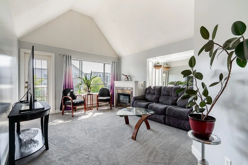 This 1,053 sq. ft. 2 bed/2 bath SOUTHWEST FACING TOP FLOOR CORNER home offers a bright, welcoming feel. 13' VAULTED CEILING, large windows, and a skylight fill the space with NATURAL LIGHT, and from the kitchen you can enjoy a charming MOUNTAIN view. A private balcony is the perfect spot to relax with your morning coffee or unwind at the end of the day. Recent UPDATES include fresh paint, new baseboards, modern flooring, quartz countertops, backsplash, & a GORGEOUS BRAND NEW WALK-IN SHOWER in the ensuite. The main bath has been FULLY RENOVATED with a sleek vanity, new shower, toilet, and flooring. With in-suite laundry, NO DIRECT NEIGHBOURS, and a location within walking distance to parks, Timms Community Centre, schools, and the future SkyTrain, this home is ready for you to enjoy!