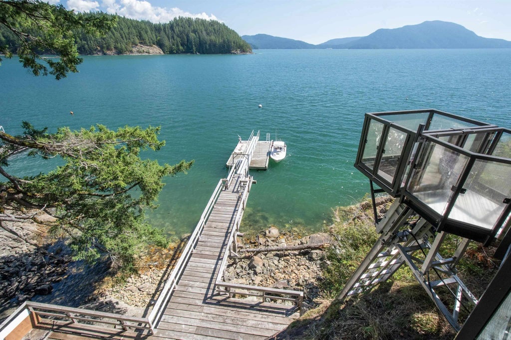 A rare opportunity to own an architectural WATERFRONT masterpiece. Designed by renowned architect Henry Yorke Mann, Posts Standing is a striking West Coast Modernist retreat that blends bold design with the natural beauty of West Bay on Gambier Island. The 2-bed home was milled with logs from the beautiful 1.2-acre, SE-facing acreage and features expansive glass windows to create a feeling like it was grown from the land itself. The estate features a guesthouse with 3 pce bath, a 2-stall carport, a large play area for kids, a sauna, and a large garage/workshop with tons of storage. This estate comes with all of the toys, John Deere 4-seat Gator, Peloton, water bike, 2014 Sea Doo with a ramp and winch on a permitted 20'x35' dock with a Funicular elevator & custom stone steps. Must see!