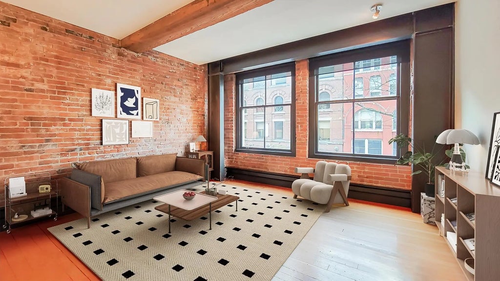 This captivating 812 sqft loft that perfectly blends timeless charm with urban convenience. Featuring original hardwood floors, heritage-style exposed brick walls, and oversized windows that flood the space with natural light, this home is a true gem. Situated directly across from the iconic Steam Clock, this loft offers unparalleled access to all that Gastown has to offer—boutique shopping,restaurants, and the convenience of Waterfront SkyTrain Station, all just steps away. Whether you're looking for a sound investment opportunity or a stunning place to call home, this property checks all the boxes. This is a unique and vibrant piece of Vancouver’s history! 2005 winner of the Award of Excellence for Revitalization. FOUR VIRTUALLY STAGED PICTURE TWO LIVING ROOM AND TWO BEDROOM