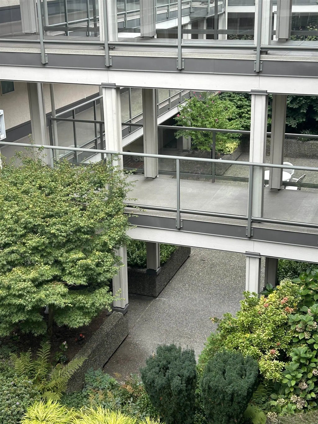 Top floor luxury 2 bedroom, 2 full bathroom condo. Spacious, bright & quiet, dramatic vaulted ceiling in the living and dining areas. Nearly 1,400 sq/ft with large open kitchen, granite counters, gas fireplace, and lots of extras like a window at the kitchen sink & bonus in-suite laundry room. A practical layout w/ample storage, phantom screen doors & integrated blinds right in the doors. It's vacant and ready to go with new carpet and paint. You will love the inner courtyard bringing natural light and fresh air to your front door in a beautiful intimate setting. A naturally lit secure garage, all located centrally and easily walkable to Semi Mall and transportation. Close to White Rock and Crescent beaches, this is the place! Measurements from strata plan, buyer to verify if important.