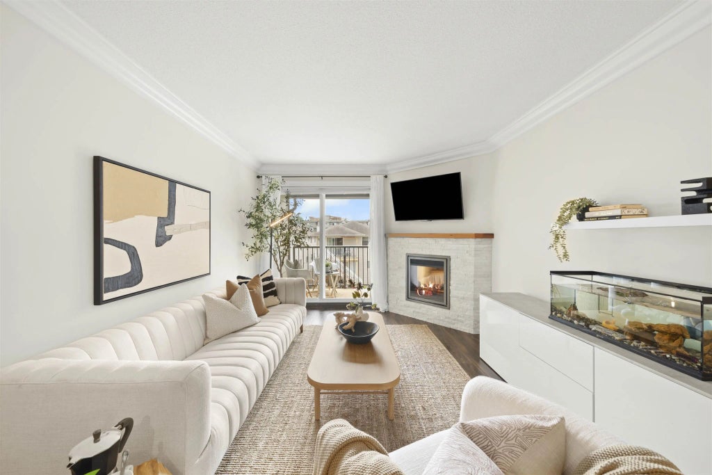 Welcome home to Rivers Edge in the vibrant heart of Downtown Port Coquitlam! This nearly 1000 sqft unit offers modern updates in a prime location. The home boasts 2 updated baths & 2 spacious bedrooms w a primary suite that provides a perfect retreat at the end of the day. Renovated kitchen w sleek stone counters, bar seating & full SS appliances. The bright and open floorplan is complemented by high-quality laminate flooring & crown moulding throughout. Enjoy your morning coffee or evening drink on the huge south-facing deck. This boutique building has been significantly updated with a new modern exterior and common areas. Walk to charming cafes, popular restaurants, Poco Trail, Gates park, WCE & more! In suite laundry, secure parking & storage included. Don't miss the best of DT Poco!