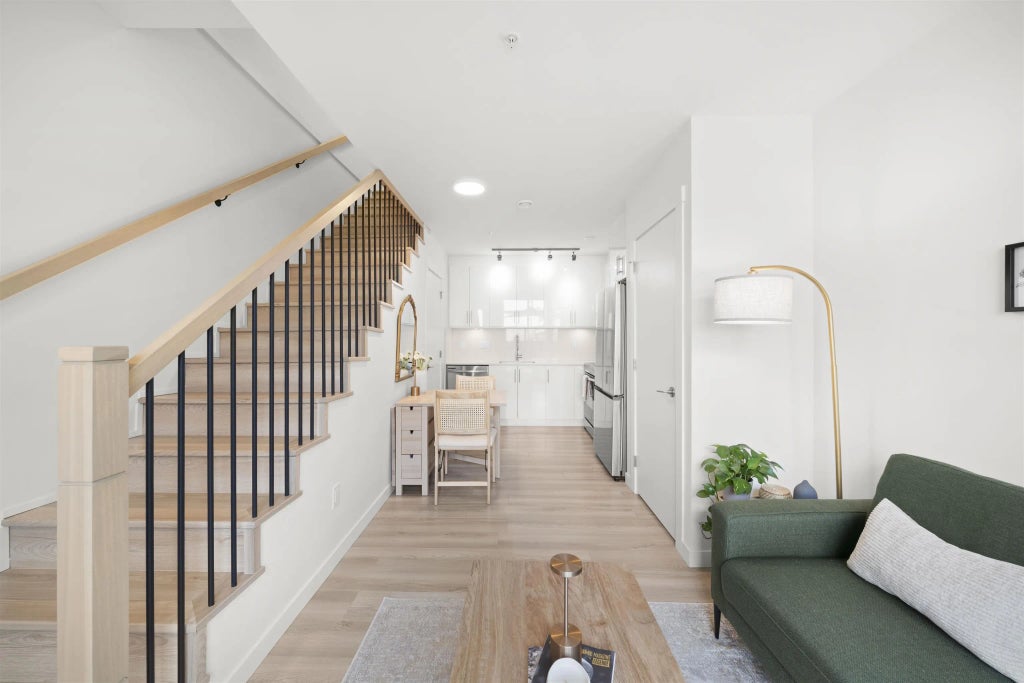 Welcome to Moody on the Hill. Built in 2024, this townhome-style 1 bedroom walk-up offers its own private street-level entrance for true convenience and a functional two-level layout with excellent separation between living and sleeping areas. Modern finishes include light oak laminate flooring, sleek kitchen & bathroom hardware, built-in appliances, and in-suite laundry. Complete with 1 parking and 1 storage locker, all just steps from Moody Park, shopping, cafés, transit, and the New Westminster Quay. A rare blend of comfort, style, and walkability.