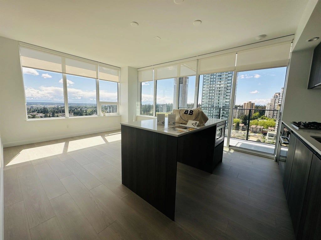 This corner residence, spanning approximately 902 sq ft, features a well-appointed 2 bedroom and 2 bath + Den layout; bathed in natural light through expansive windows and complemented by a spacious balcony, this home exudes brightness and openness. Features Air-conditioning, engineered countertops, Meile and Fulgor Milano appliances, LED lights and bright atmosphere. Amenities include Concierge & games room, karaoke room, gym, yoga studio, Theater with outdoor lounge! Just steps to Metrotown shopping Mall, Skytrain, Study Room, Yoga Studio, Crystal Mall, Library, Central Park with tennis courts, walking trails and much more. 1 parking spot and 1 Locker included.