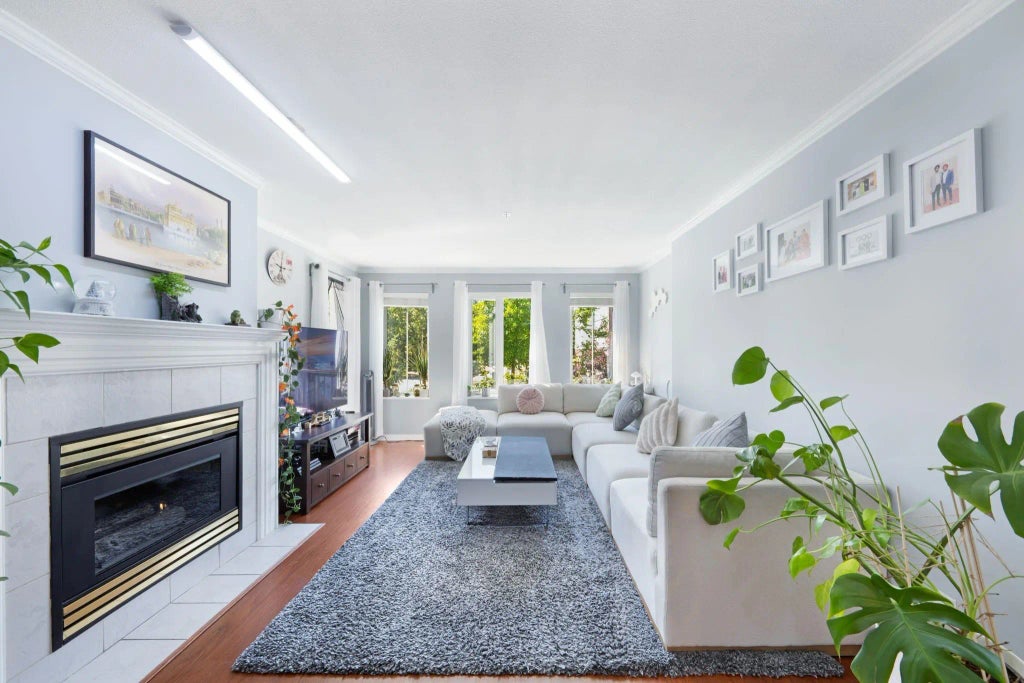 All measurements are approximate done by Realty shot, Buyer or Buyer's agent to verify. Welcome to this well-kept 2-bedroom, 2-bathroom condo located in the heart of Strawberry hill Offering 1,000+ sqft of bright and functional living space, this home features a cozy gas fireplace, radiant hot water heating, and in-suite laundry. The kitchen is equipped with all major appliances, including a dishwasher, microwave, refrigerator, and stove. Enjoy the comfort of one secure underground parking space and a storage locker. The building offers great amenities such as a clubhouse and storage facilities. Conveniently situated near Strawberry Hill Shopping Centre, Walmart, Cineplex, restaurants, schools, parks, and transit, this property is ideal for first time home buyers!!!