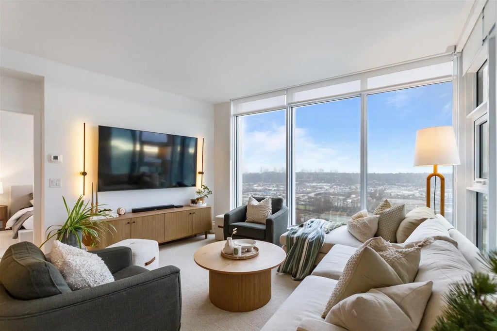 Welcome to BEST VALUE ($225+K BELOW PURCHASED PRICE) at Pier West—New Westminster's premier waterfront address by renowned developer Bosa.Perched high on the 32nd floor of this iconic West Tower, this exceptional residence delivers the ultimate in modern luxury living with forever-unobstructed views of the Fraser River and vibrant city skyline. Light-filled home featuring floor-to-ceiling windows that flood every room with natural light and showcase those breathtaking river vistas from morning coffee to evening sunsets. The open-concept layout is perfect for effortless entertaining — a sleek gourmet kitchen with premium appliances,gas cooking,solid-slab countertops,waterfall island,and integrated finishes flows seamlessly into the generous living and dining area.