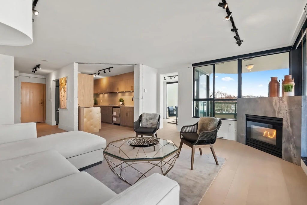 Welcome to one of West Vancouver's most established concrete residences. This extensively remodelled 2-bed/2-bath corner home at 'Westroyal' offers a spacious 1,286sf open-concept layout designed for both comfort & entertaining. Floor-to-ceiling windows fill the home w/natural light, offerin outlooks of sunset skies, mountain silhouettes, & peek-a-boo views of the Lions Gate Bridge & Burrard Inlet. The interior feats high-end finishes, incl upgraded flooring & modern chef's kitchen. The primary suite incl a WIC & spa-inspired ensuite w/jetted soaker tub. 2 parking stalls & storage locker. Residents of The Westroyal enjoy resort-style amenities incl indoor pool, hot tub, sauna, fitness centre. Quick access to downtown Vancouver, steps to shopping & dining at Park Royal and Ambleside Beach.